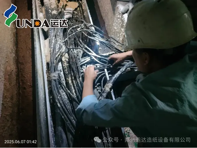 Seguindo as pistas, a equipe de emergência da Yunda realizou uma inspeção minuciosa nos cabos. Nas primeiras horas da manhã, o ponto de falha foi finalmente encontrado: um curto-circuito no cabo de sinal dentro da bandeja de cabos causou a falha.