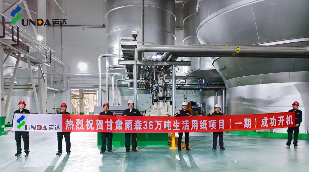 O projeto está equipado com quatro máquinas de papel tissue: três com largura de 3500 mm e uma com largura de 2850 mm, todas projetadas para operar a uma velocidade de 1600 m/min, com uma capacidade total de aproximadamente 115.000 toneladas. A Yunda forneceu um sistema completo de preparação de massa para TM1, TM2, TM3 e TM4, abrangendo todo o processo, desde o manuseio da matéria-prima até o fluxo final de abordagem da polpa. O escopo do fornecimento inclui principalmente: