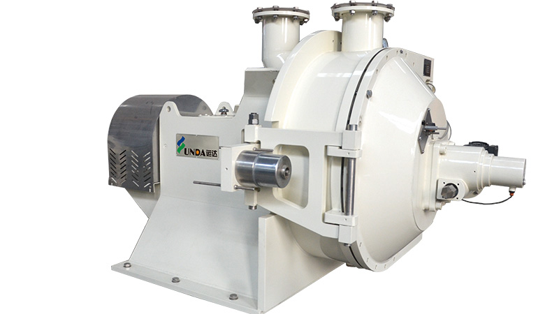 O refinador possui duas seções abrasivas. De acordo com o ângulo de inclinação do padrão de abrasão, quatro placas abrasivas são fixadas, duas à esquerda e duas à direita. Duas placas à esquerda são fixadas na parede interna da carcaça da máquina e dentro do disco rotativo, e duas placas à direita são fixadas na parte externa do disco rotativo e do pedestal móvel, formando duas seções abrasivas (consulte o desenho para instruções de instalação). A massa é transportada para a seção abrasiva através do tubo de entrada. Após a trituração e o refino, o material é bombeado para fora da seção abrasiva e flui para o corpo, sendo finalmente descarregado pelo tubo de saída.