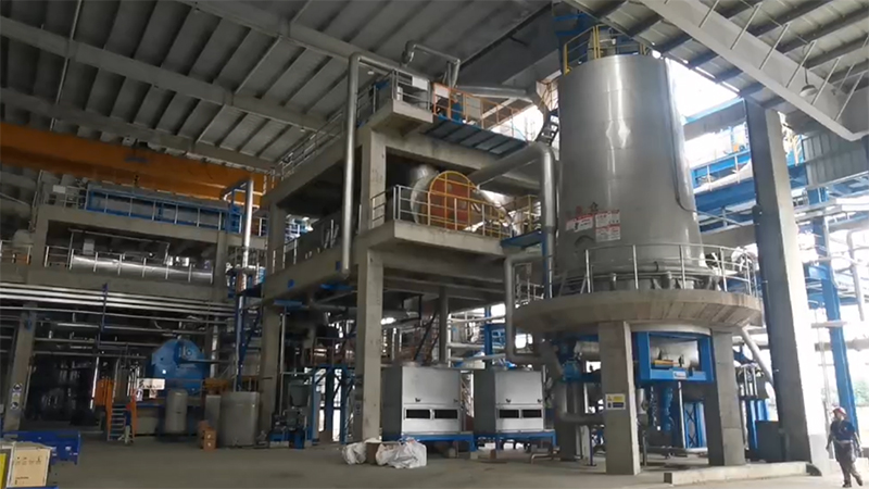 Os cavacos amolecidos são primeiramente alimentados em um alimentador de fita por meio de um parafuso de alimentação lateral e, em seguida, empurrados para o triturador térmico, onde são triturados e amassados em pedaços uniformes semelhantes a fios de cabelo. Quando necessário, produtos químicos podem ser adicionados ao triturador. Os pedaços semelhantes a fios de cabelo produzidos têm grandes áreas de superfície específicas e formato e tamanho uniformes, o que os torna fáceis de receber tratamentos químicos. Após o triturador térmico, os pedaços são soprados para o separador ciclone, onde parte do vapor é separado dos pedaços e recuperado, e os pedaços são enviados para a torre de HC.