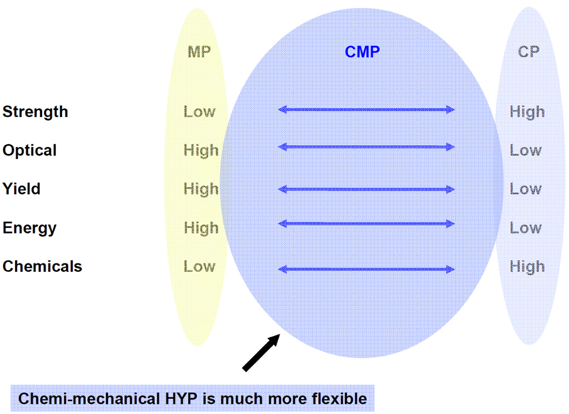 Maior volume e propriedades ópticas. - Também há sinergias entre as polpas HWD HYP e CP: