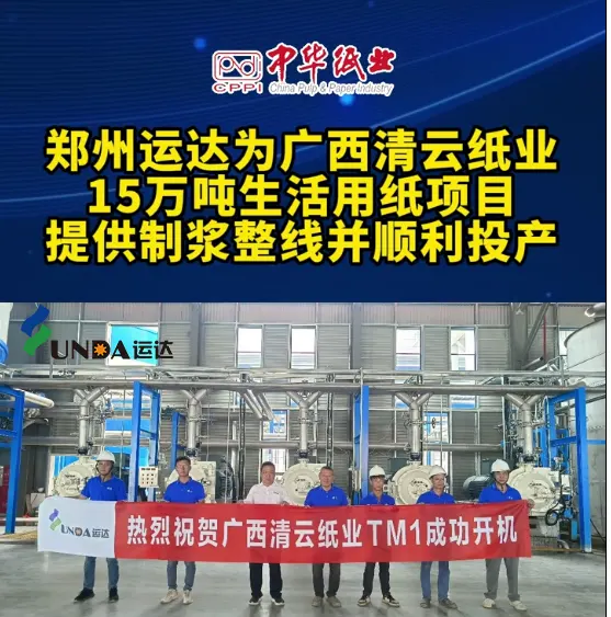Em 27 de maio, a primeira bobina de papel foi produzida com sucesso na Guangxi Qingyun Paper Industry Co., Ltd., localizada no Parque Industrial Circular Yue-Gui, na Zona de Alta Tecnologia de Guigang. Isso marca o comissionamento bem-sucedido da primeira linha de produção de papel da empresa para o projeto de papel tissue de 150.000 toneladas e injeta uma nova vitalidade ao desenvolvimento da indústria papeleira no parque.