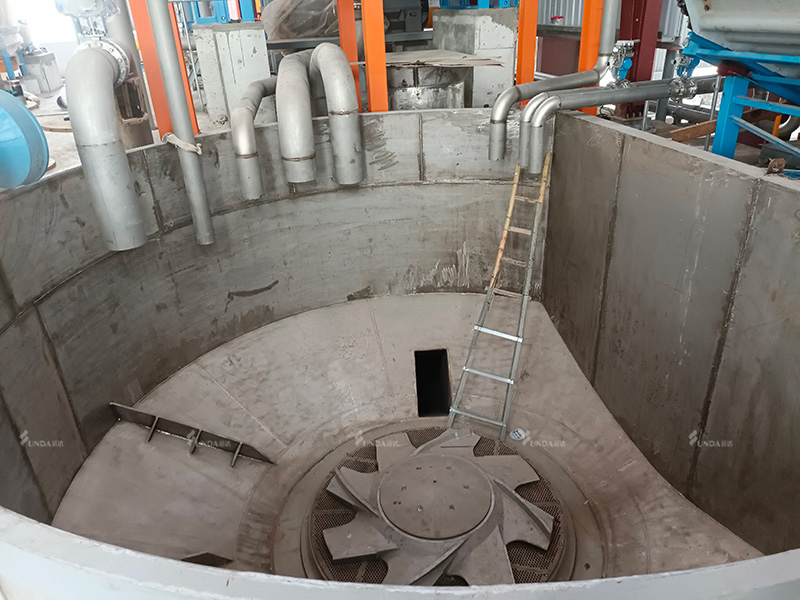 O papel usado é transportado para o despolpador tipo D, que é o principal equipamento do sistema de despolpamento contínuo de baixa consistência, através de um transportador de corrente. O design especial do corpo do tanque encurta as rotas de recirculação da massa e melhora o contato entre o rotor e a massa, reduzindo o tempo de despolpamento e o consumo de energia.